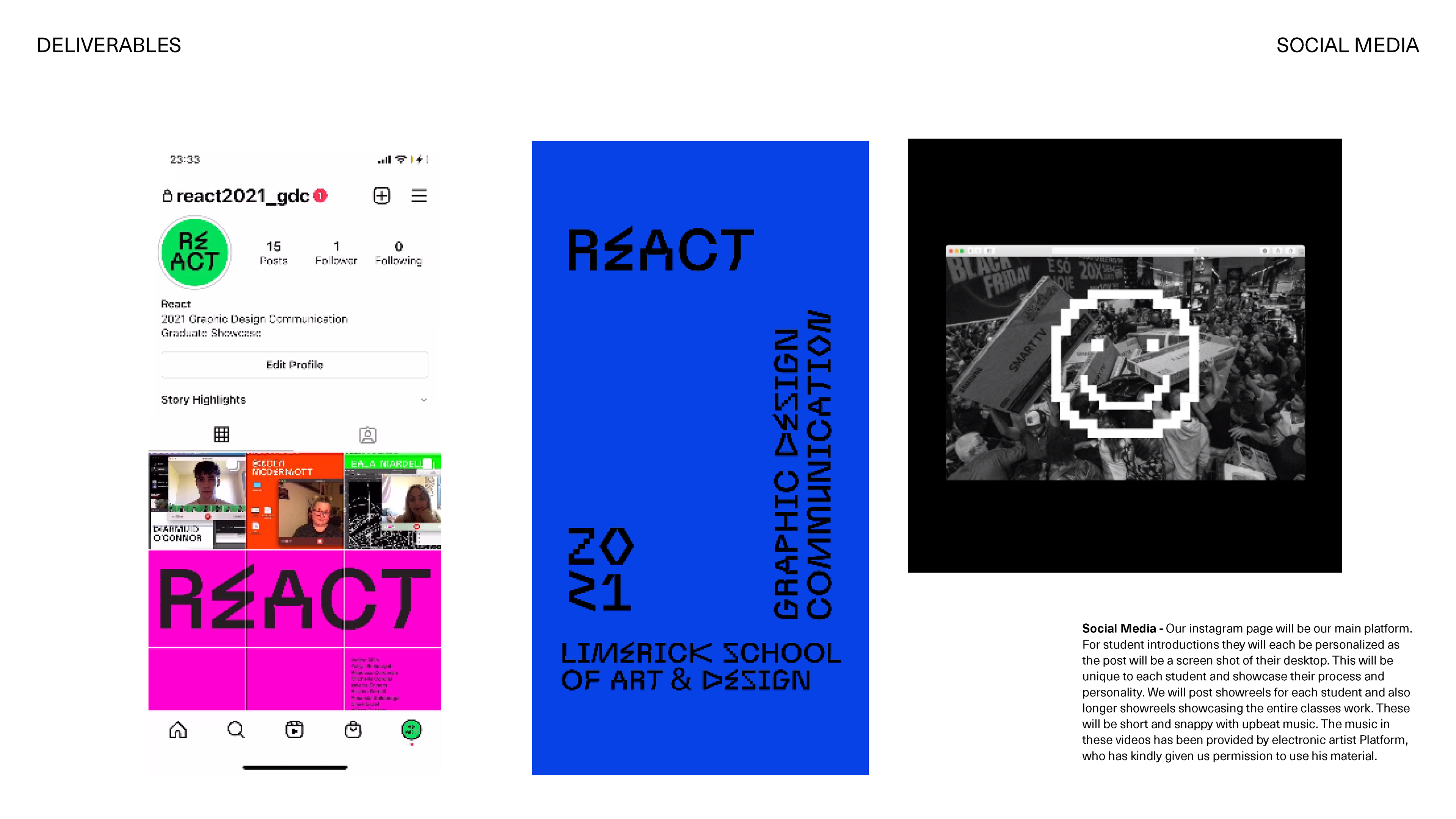 We used these idents in our Instagram campaign. They were used to tease the show on our Instagram stories and also posted to the main feed in between student profiles.