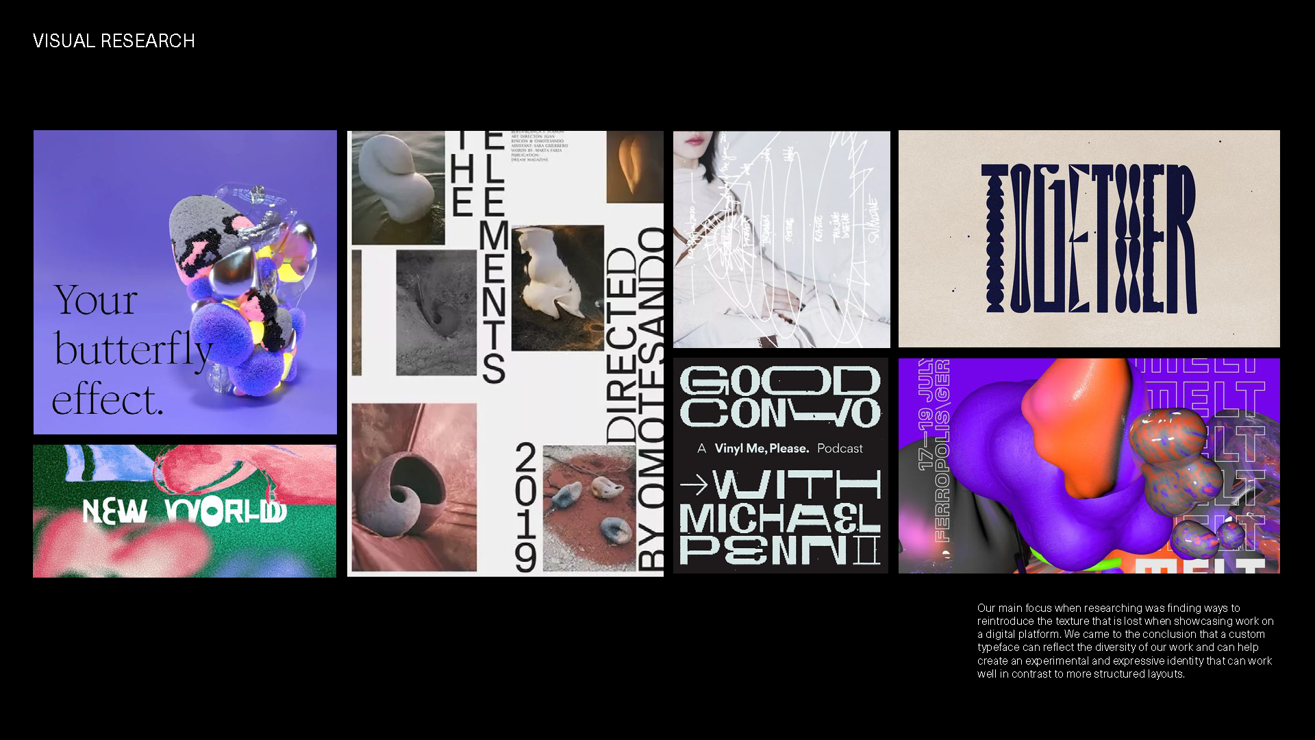 As part of a collaborative team tasked with developing a digital degree show alternative (due to COVID-19), I was a key contributor in several critical areas. My work included concept development, defining the brand identity, and assisting with internal presentations. I also helped manage project assets and personnel, and successfully executed the social media advertising campaign used to drive the website's launch.