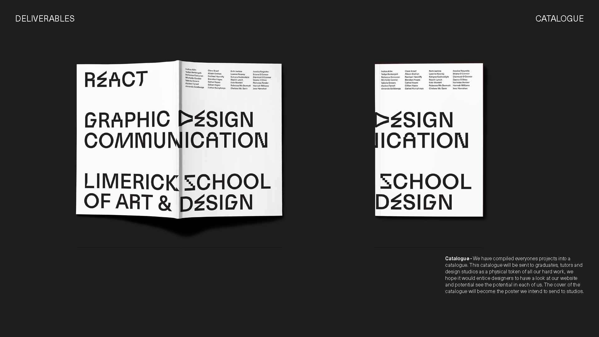 Once we were selected to produce the degree show we began sending our brand assets to the class including the colour story and custom typeface and asked the class for various assets to start our social media campaign.
